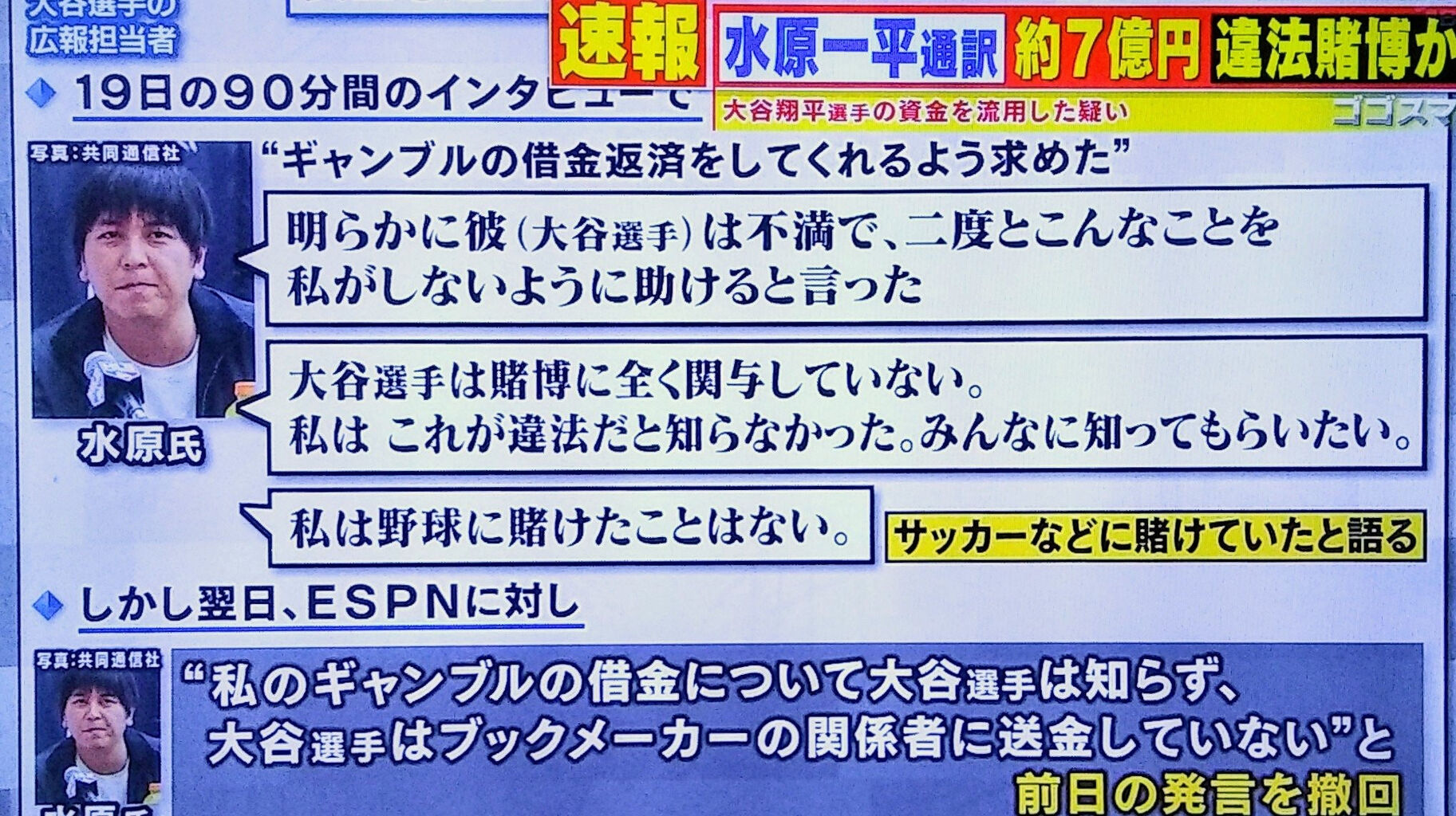 (10)水原もそれに合意し前日の発言を撤回し「大谷は賭博のことも借金のことも何も知らなかった」と言いはじめて全部責任を被ったんだな