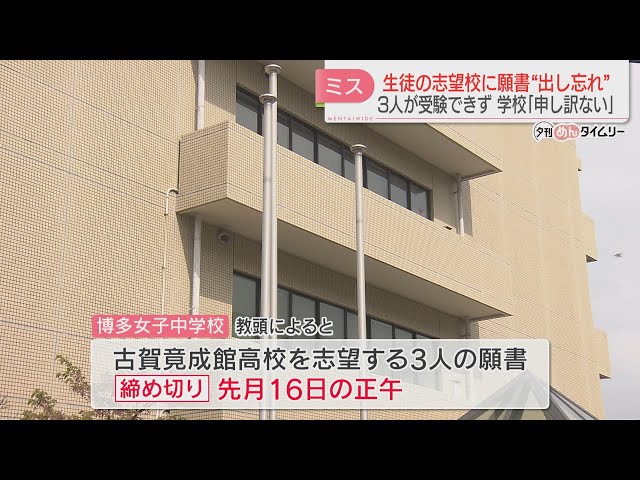【福岡】ありえないミス 博多女子中で高校入試願書出し忘れ